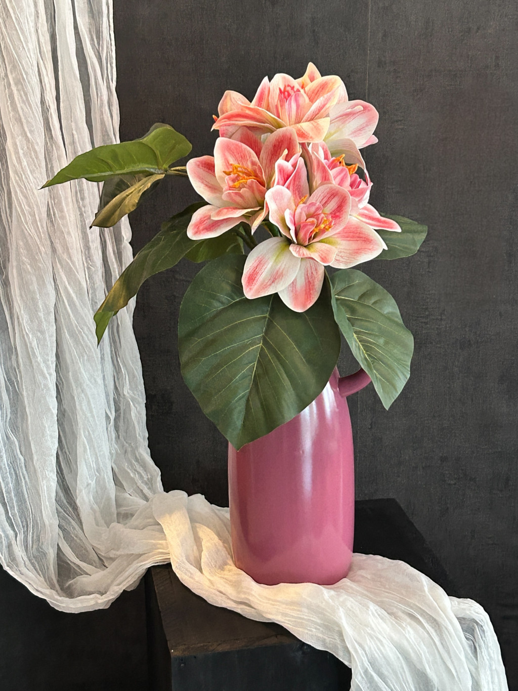 Légiesen könnyed, romantikus hangulatot áraszt, legyen szó otthonod nappalijáról, étkezőjéről vagy akár egy ünnepi asztal központi díszéről. Nem igényel gondozást, nem hervad el – csak helyezd el a térben és élvezd a szépségét minden nap.