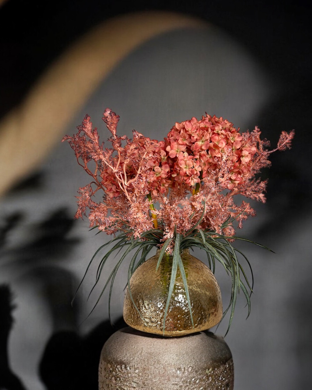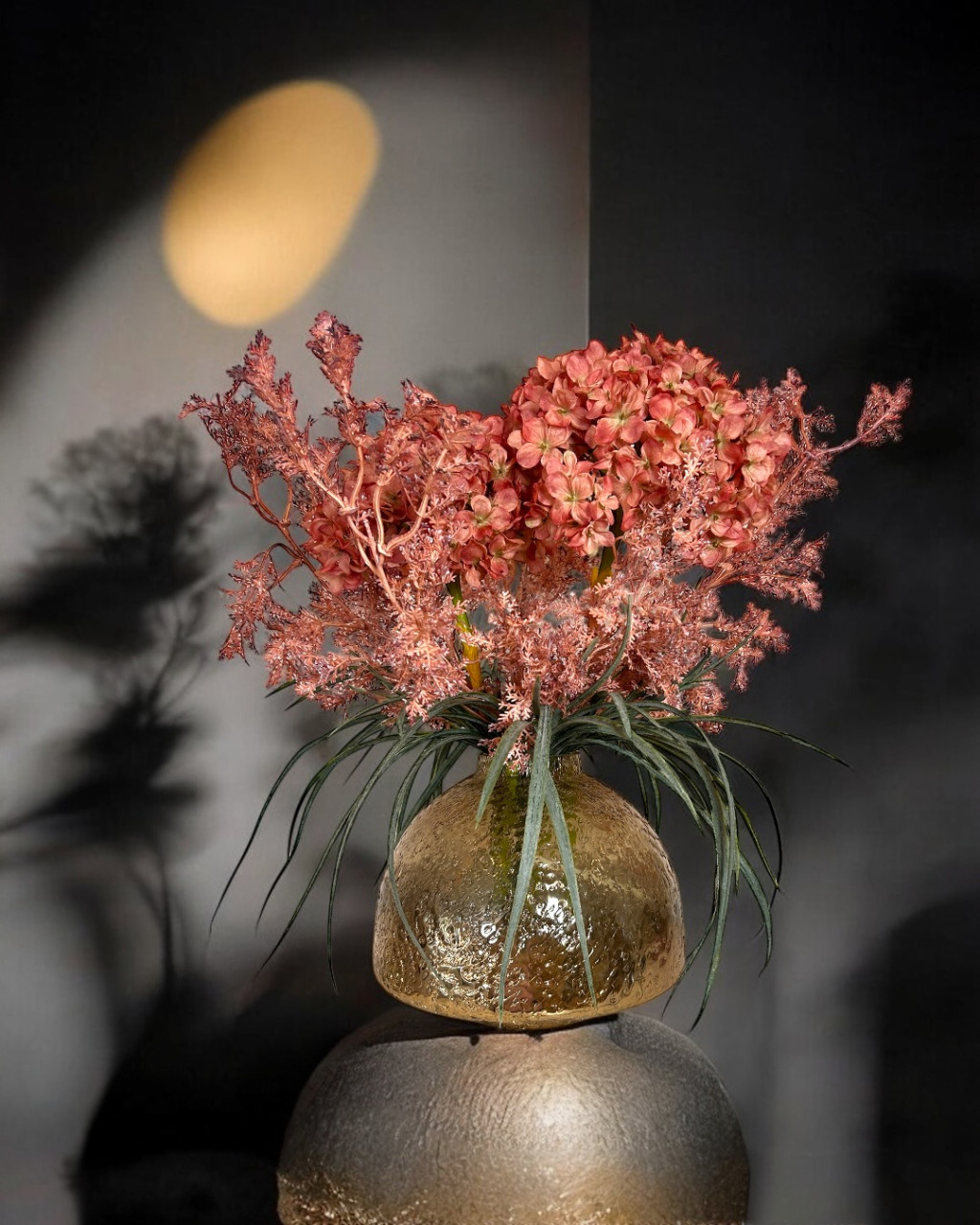 Légiesen könnyed, romantikus hangulatot áraszt, legyen szó otthonod nappalijáról, étkezőjéről vagy akár egy ünnepi asztal központi díszéről. Nem igényel gondozást, nem hervad el – csak helyezd el a térben és élvezd a szépségét minden nap.