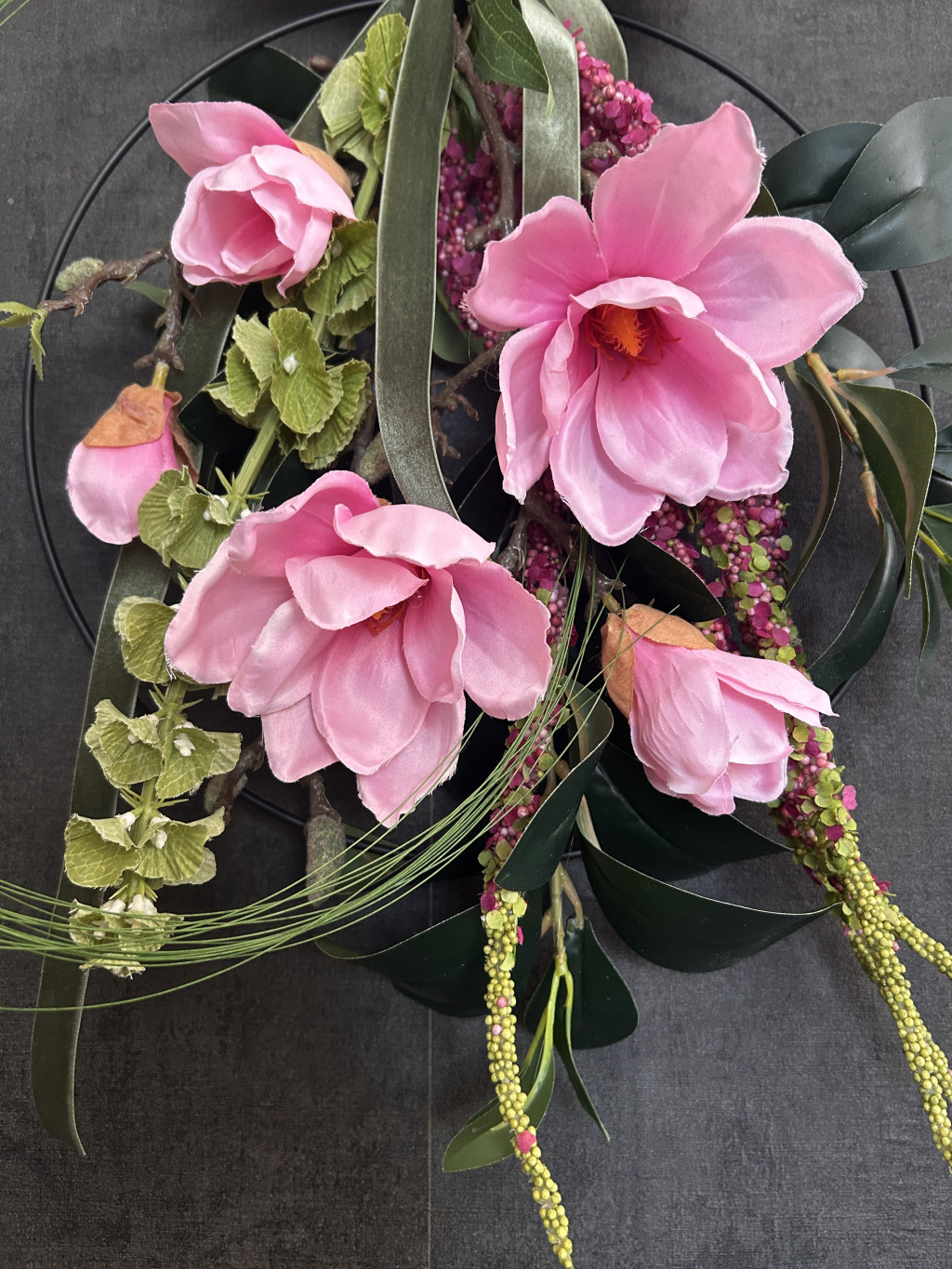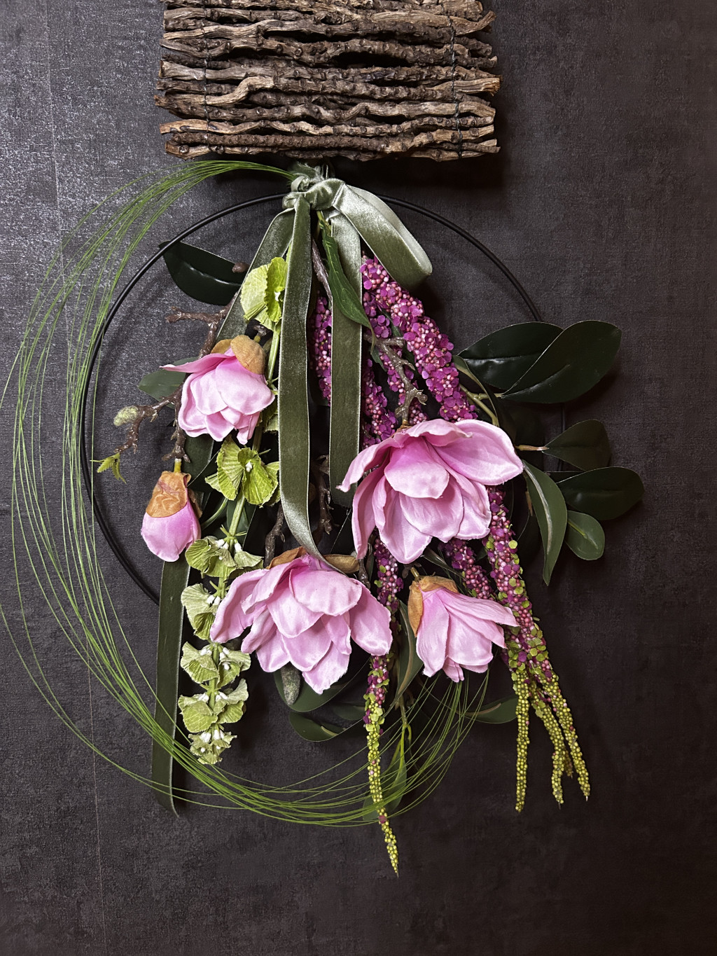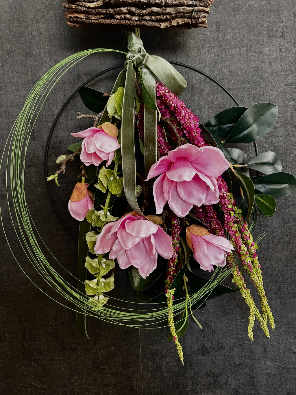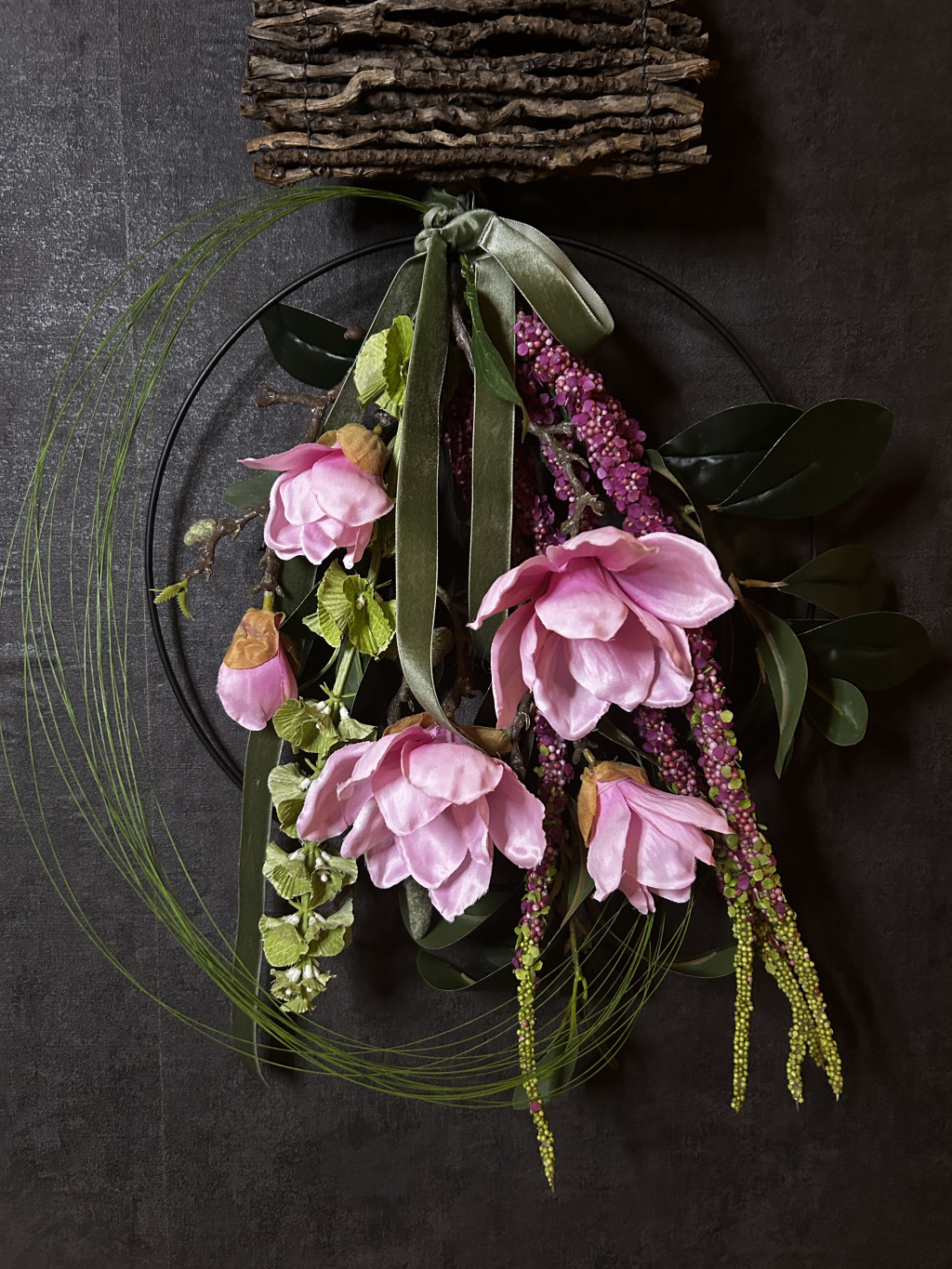 Exkluzív mangólia selyemvirágokkal készült ajtókopogtató
