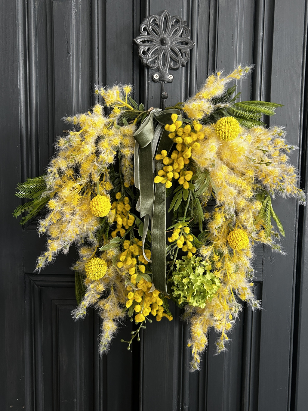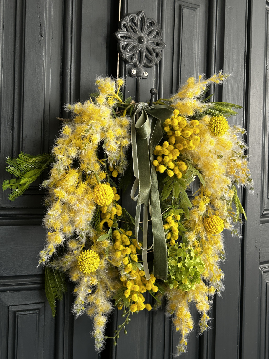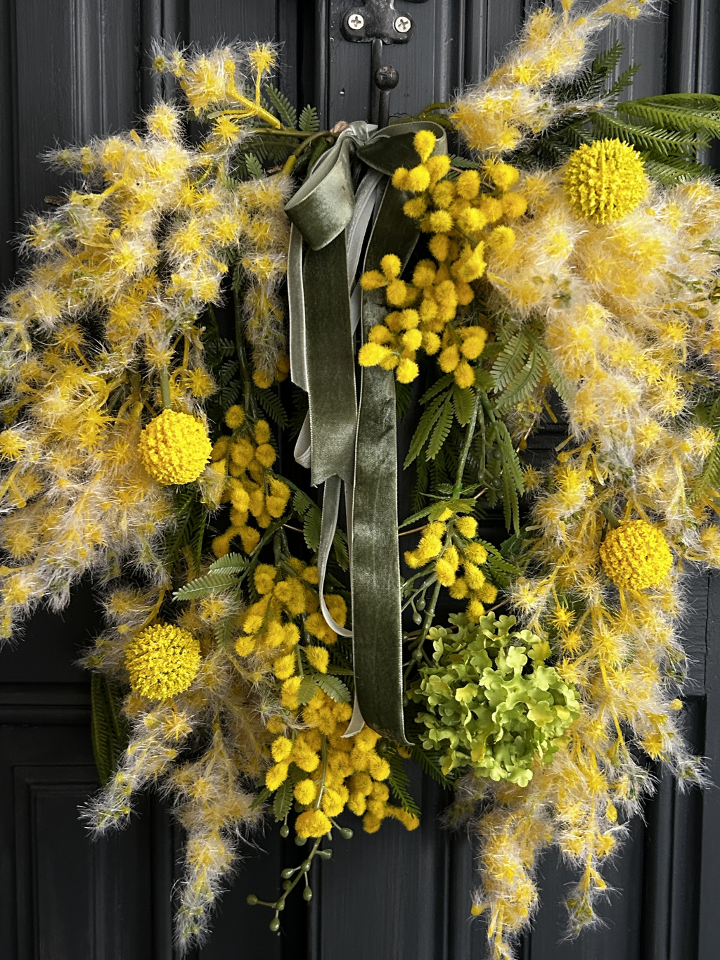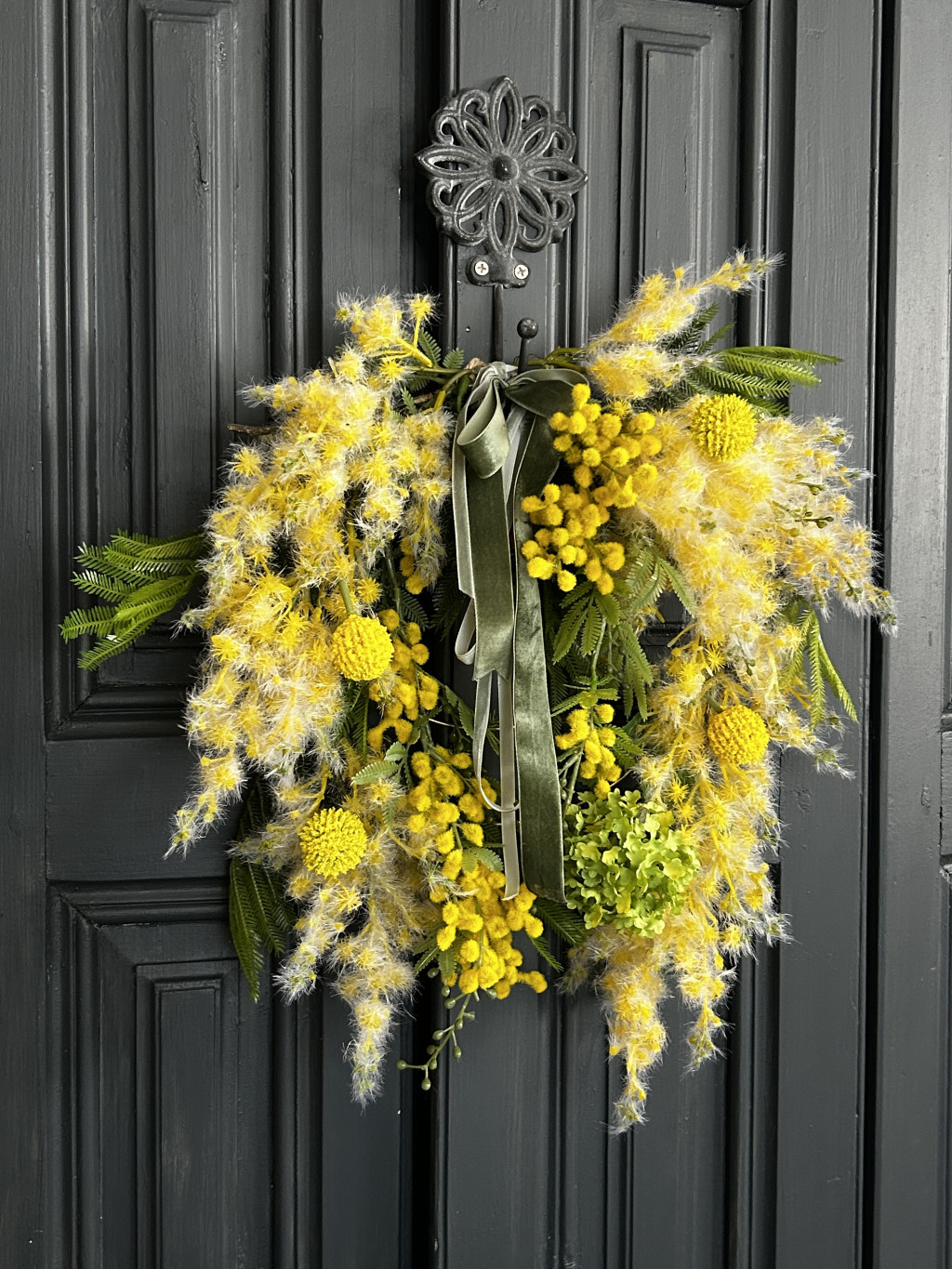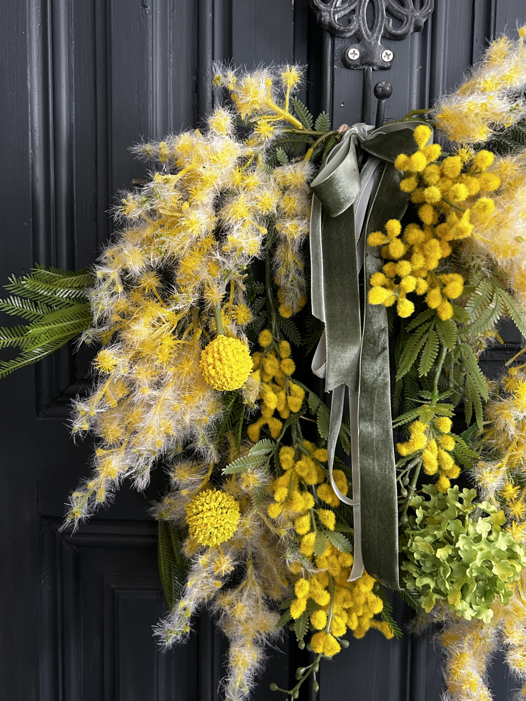 Exkluzív mimóza selyemvirágokkal készült ajtókopogtató